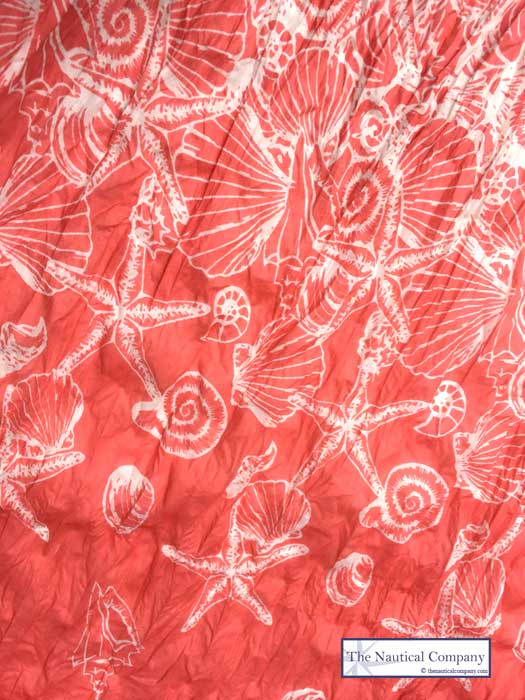 Accessorise your Breton top with this great cotton tassel scarf with a coastal print of seashells, in coral and white. Was also available in blue and white (now sold out).