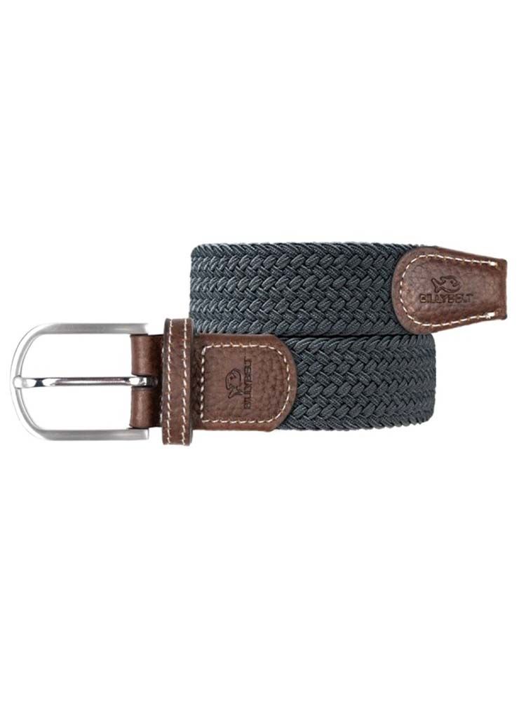 Premium quality woven elastic and leather belt in "flanel grey" colour by French label BillyBelt. The elasticated braided design allows a certain amount of stretching to give you a nice comfortable fit. So easy to use, simply put the prong through the belt, no more holes !